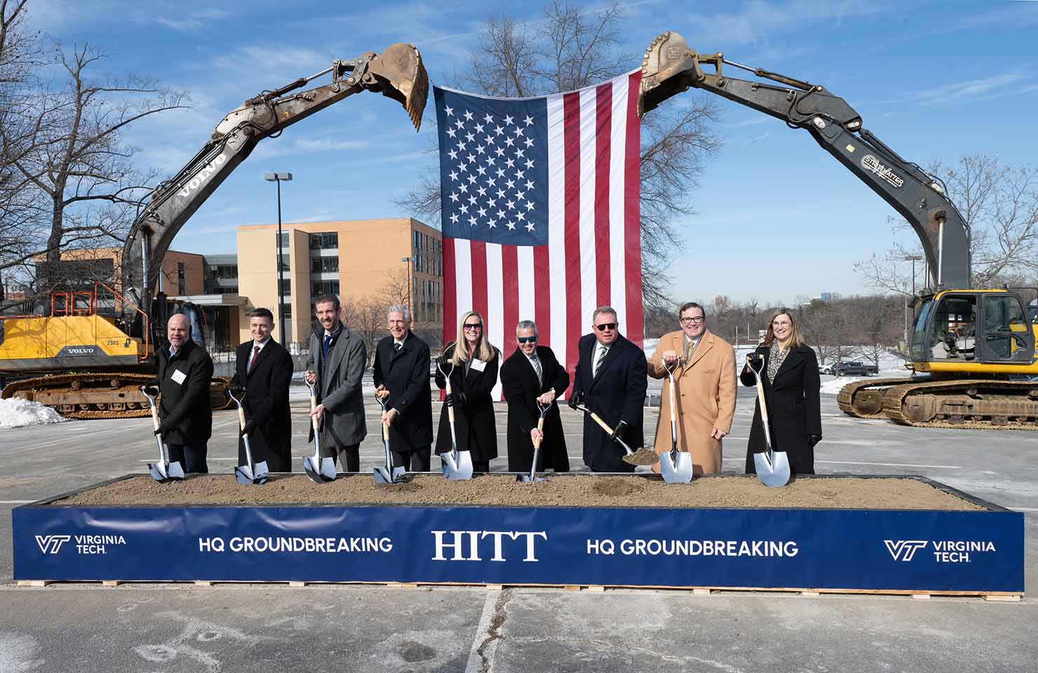 Speakers at the groundbreaking event included HITT Contracting CEO Kim Roy, Virginia Tech Paul and Paul and Dorothea Torgersen Dean of Engineering Julie Ross, Congressman Don Beyer, Chief Deputy Secretary of Virginia Commerce and Trade Juan Pablo Segura, and Fairfax County Dranesville District Supervisor James N. Bierman, Jr.