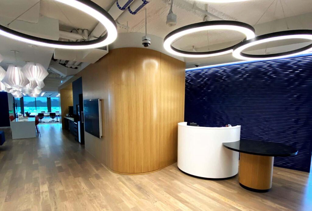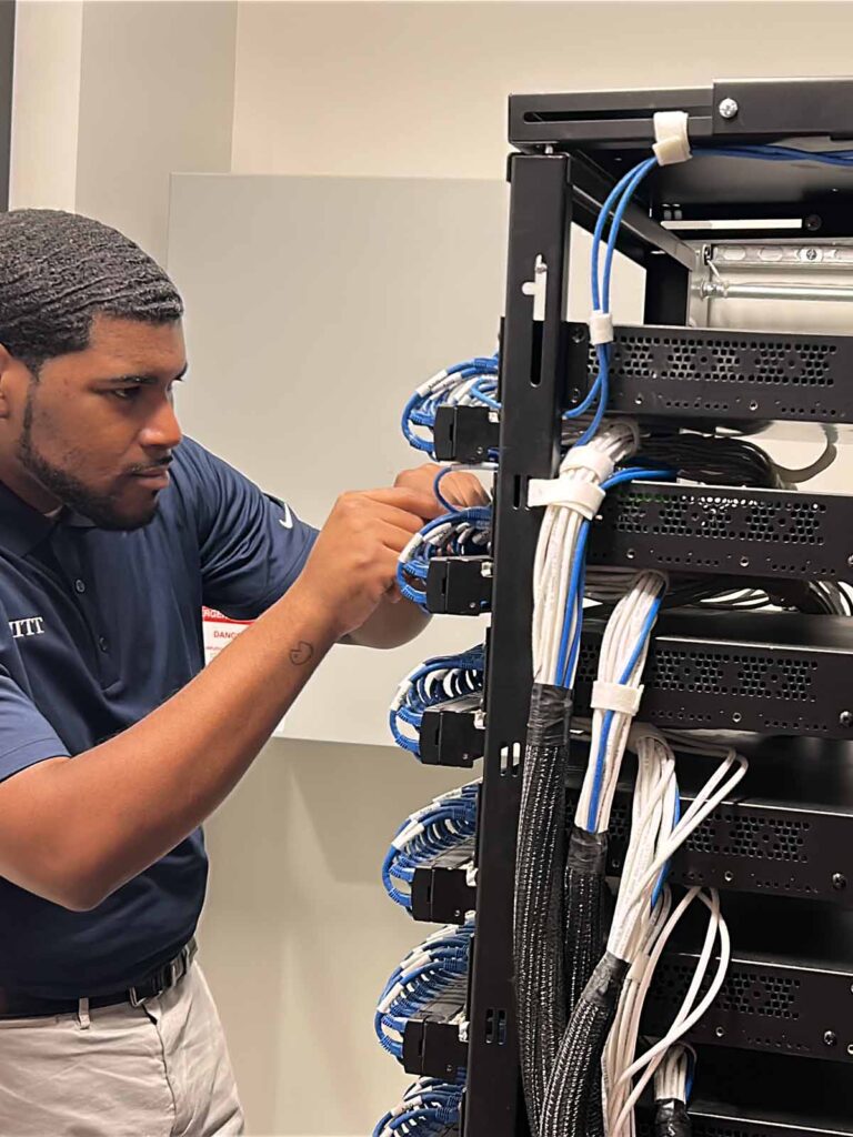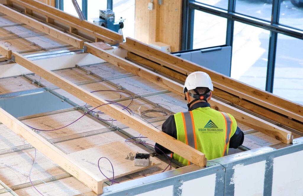 PoE has also been integrated into recent client projects. At The Wharf in Washington, DC, our team brought a client’s trophy-class office vision to life, implementing extensive MEP work and low-voltage systems, including PoE integration for lighting, branding, and furniture power. Every detail was coordinated for seamless performance and sustainability, putting the space on track to achieve LEED Gold certification.