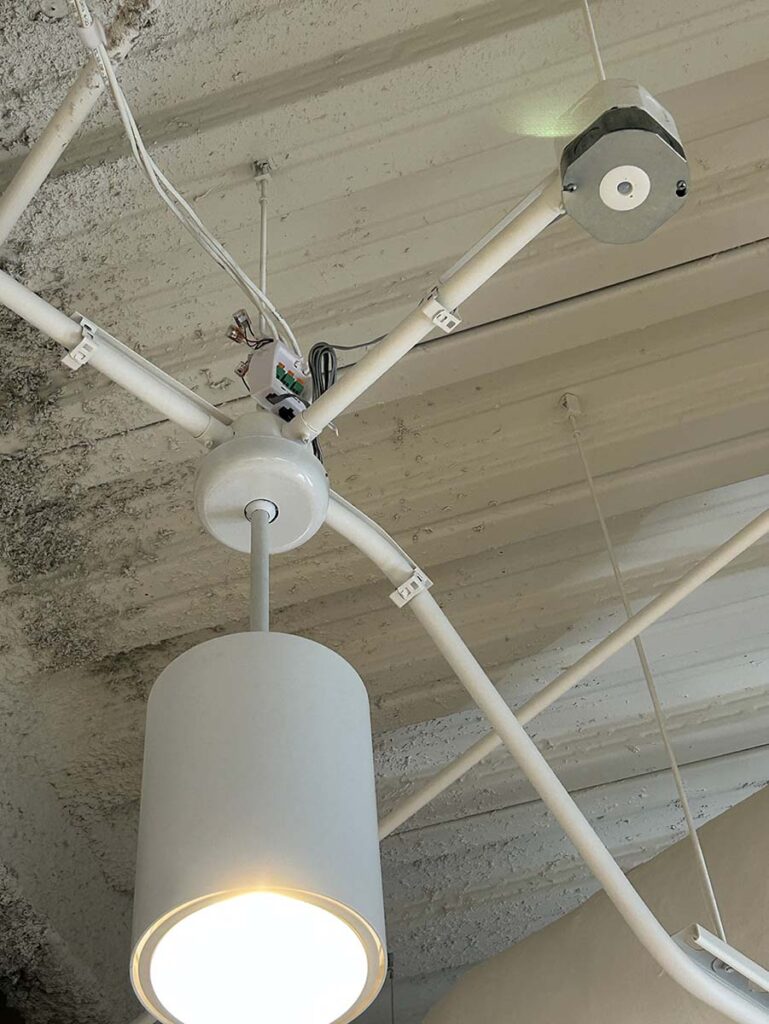 We took testing further at our research and development hub, Co|Lab, where a digital ceiling infrastructure mock-up, built in partnership with Vision Technologies, simulated real-world building systems. Our teams tested lighting control, workstation power distribution, and centralized monitoring, helping them understand how PoE can streamline construction, reduce energy loss, and enhance occupant comfort before applying it to larger projects.