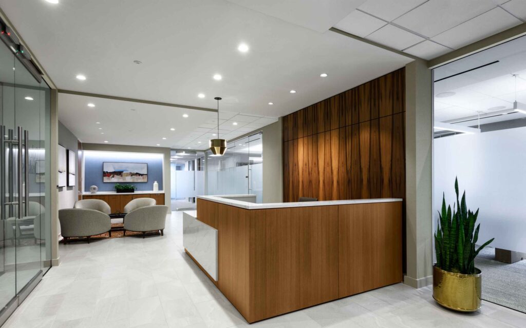 Confidential Law Firm By Jaclyn Randolph | September 11, 2022 | Comments Off on Confidential Law Firm Featured Project Confidential Law Firm Houston, Texas Scroll To Back Scroll Intro By the Numbers Vision Elements Experience Testimonial Challenges Process Innovations Results Team Members News More Law firm office in the heart of Houston Central Business District A legal client expanded to the heart of downtown Houston. The new high-end office features a full… Read More